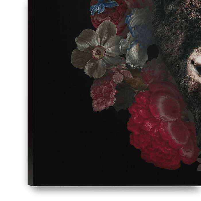 Dieser zähe Bisonbulle wird mit schönen alten Blumen enthüllt, die von mehreren alten Meistern gemalt wurden. In diesem digitalen Mixed-Media-Album kommen diese beiden zu einer perfekten und hippen Harmonie zusammen.