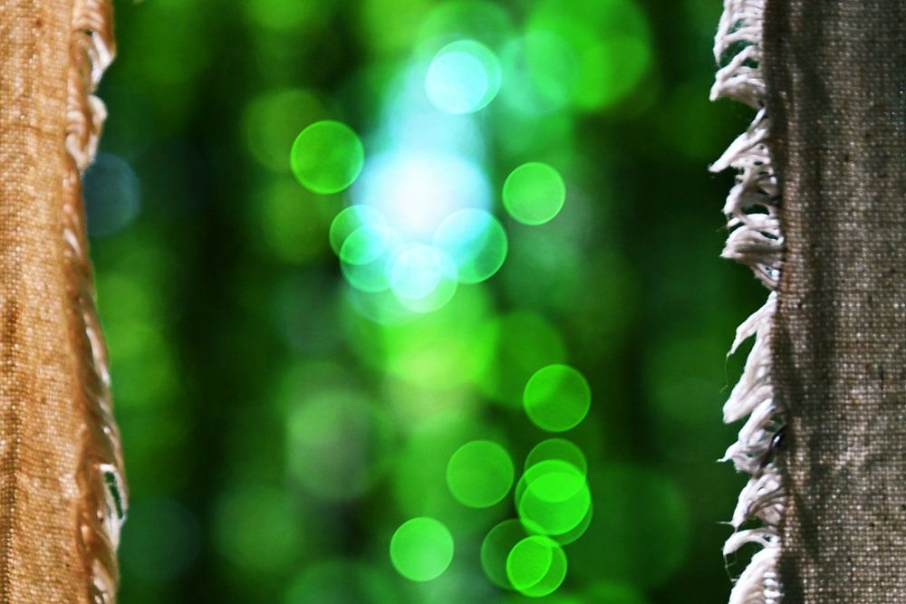Foto eines Kunstwerks aus aufgehängten Lumpen im Park von Sonsbeek (Arnheim). Was das Werk bedeutete, habe ich vergessen, aber die Komposition und die Farben erregten sofort meine Aufmerksamkeit.