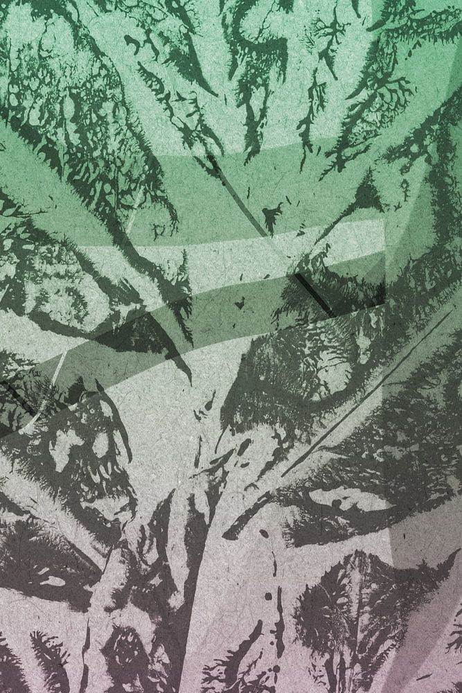Moderne botanische Illustration im Retro-Stil. Monotypie einer echten Pflanze. Pastellige Trendfarben, organische Formen und Linien, zarte Texturen. Wabi-Sabi, Shabby Chic, Romantik, Skandinavisch, Retro, Basic, Design-Interieur-Stil.
