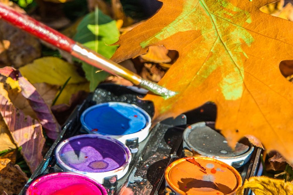 Blätter werden im Herbst mit Wasserfarbe bemalt