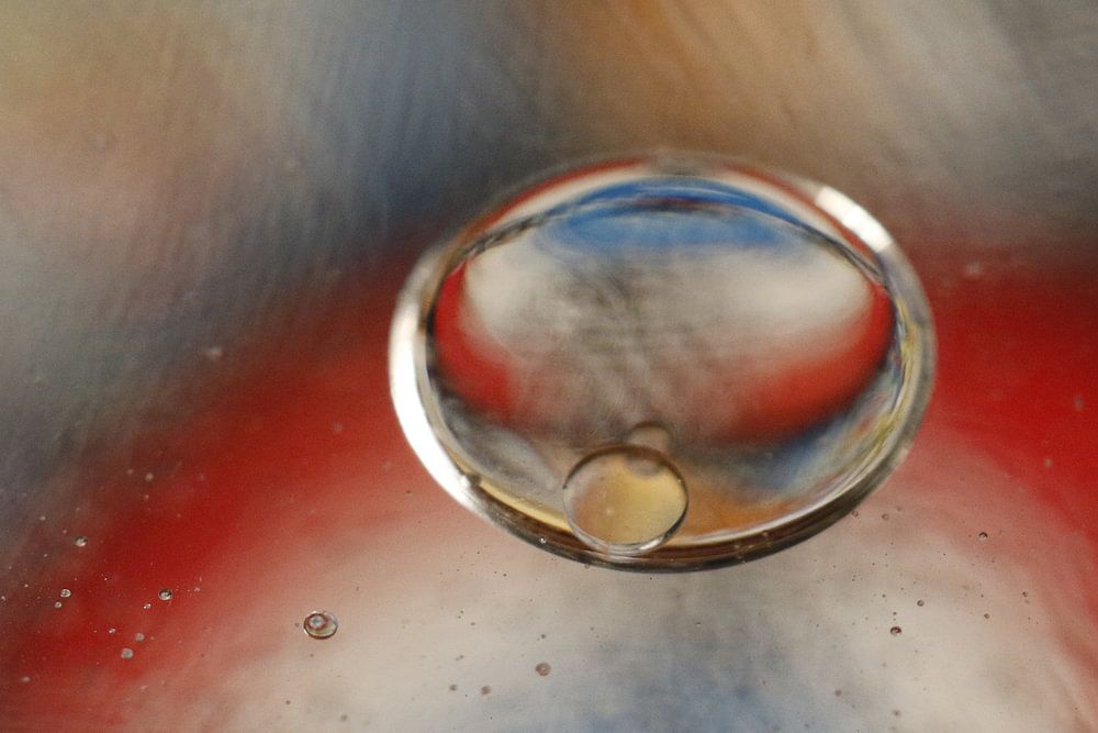 Blasen in verschiedenen Farben. Bolle Blasen, flache Blasen im Wasser mit Öl. Fotografiert mit Makro-Objektiv.