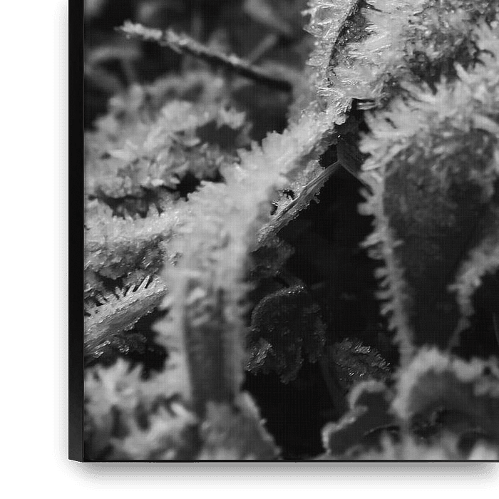 Bestelle das Foto Blatt im Rauhreif am Morgen 6 von Jörg Hausmann als Reproduktion auf Leinwand, Alu-Dibond, als Poster, Fototapete oder Acrylglasbild.