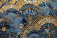 Bestelle dieses Art Deco-Wandbild Blau-goldene Fans von Whale & Sons als Reproduktion auf Leinwand, Alu-Dibond, als Poster, Fototapete oder Acrylglasbild.
