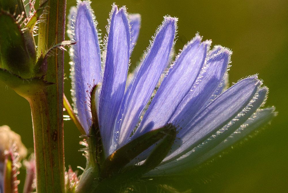 Die wilde Zichorie, Cichorium intybus, ist die Wildform der Zichorie. Die leuchtend blaue Blüte ist vor allem in Flussgebieten und an Straßenrändern zu finden und ist essbar.