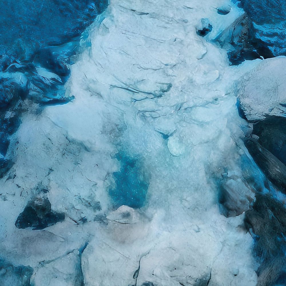 Das Kunstwerk stellt eine Reihe von Flüssen dar, die sich in einer zentralen und hellen Wohnung sammeln. Die Form der Wohnung soll an einen Gletscher oder ein gefrorenes Gewässer erinnern.