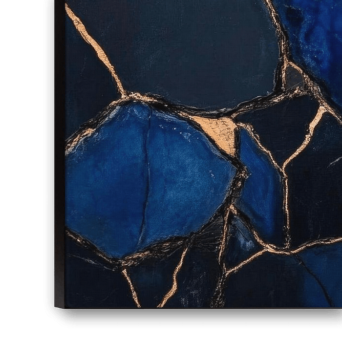 Bestelle dieses abstrakte Wandbild Blaue Mosaikstein-Oberfläche mit Goldfugen von Poster Art Shop als Reproduktion auf Leinwand, Alu-Dibond, als Poster, Fototapete oder Acrylglasbild.