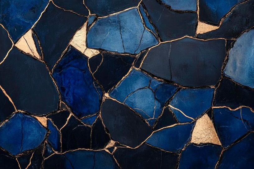 Blaue Mosaikstein-Oberfläche mit Goldfugen von Poster Art Shop