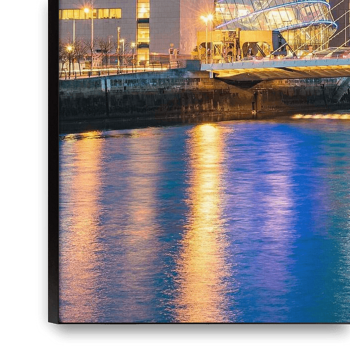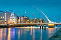 Samuel Beckett Bridge über dem Fluss Liffey in der irischen Hauptstadt Dublin an einem Abend im Herbst