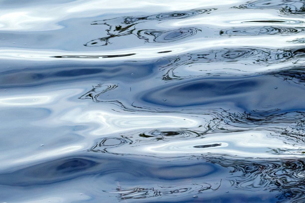 Blaue Wasseroberfläche mit glatten Wellen und Reflexion als Hintergrundtextur, Kopierraum