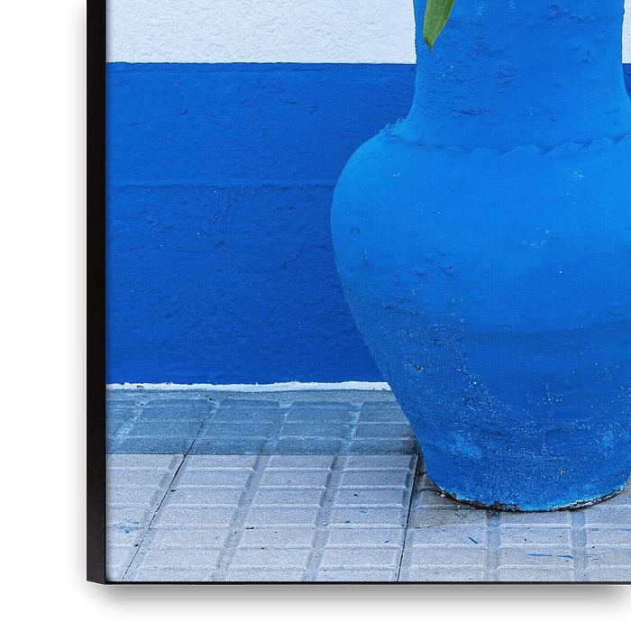 Bestelle das Foto Blauer Blumentopf in Portugal von Adelheid Smitt als Reproduktion auf Leinwand, Alu-Dibond, als Poster, Fototapete oder Acrylglasbild.