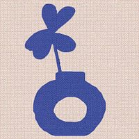 Blumen und Vasen, einfache organische Formen im skandinavischen Stil. Textil-Leinen-Textur für Retro-Stimmung.