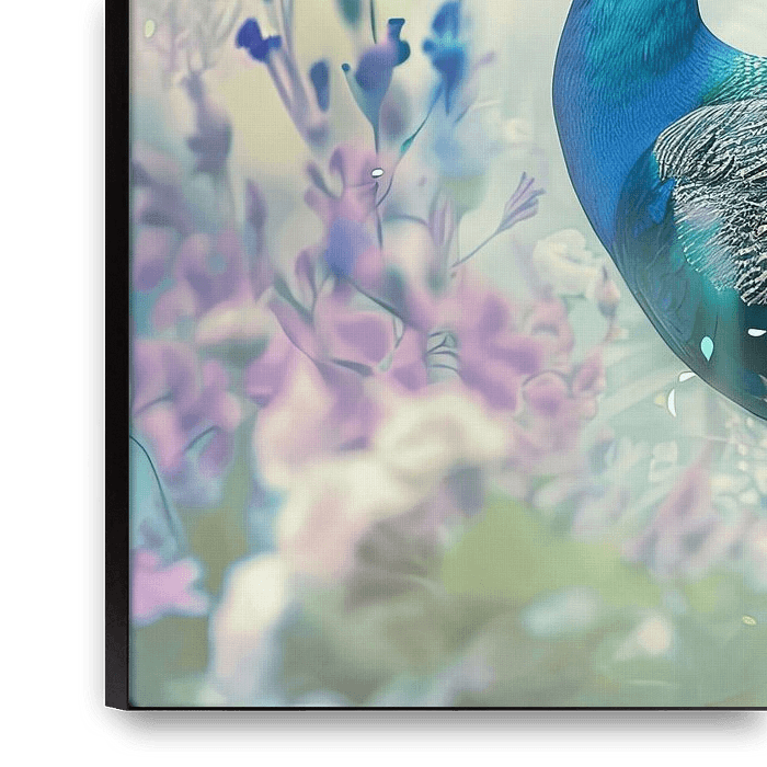 Bestelle dieses Vögel Wandbild Blauer Pfau von Poster Art Shop als Reproduktion auf Leinwand, Alu-Dibond, als Poster, Fototapete, ArtFrame oder Acrylglasbild, maßgefertigt in höchster Qualität.
