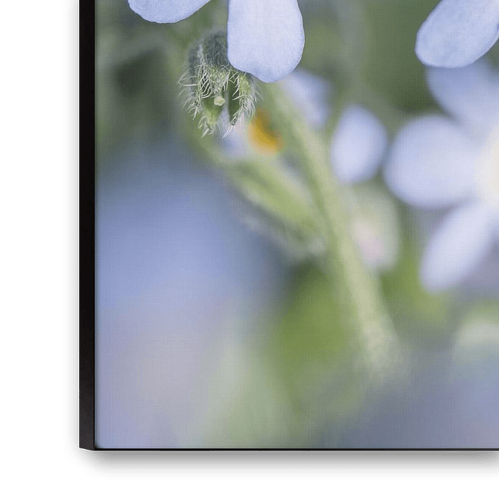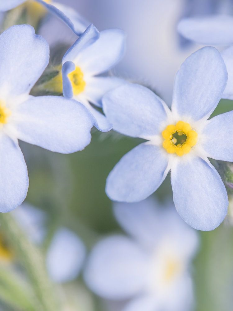 "Blaues Vergissmeinnicht" ist eine Makroaufnahme eines Paares blauer und gelber Blüten des Vergissmeinnichts.