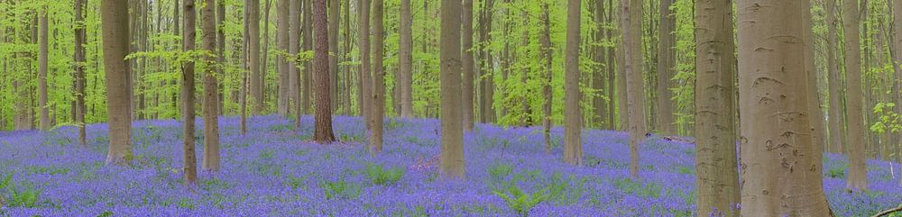 Blauglockenblüten auf dem Waldboden im Hallerbos-Buchenwald in der Nähe von Brüssel in Belgien während eines schönen Frühlingstages. Der Hallerbos-Buchenwald in Belgien ist berühmt für die im Frühjahr blühenden Blauglockenblumen der Wilden Hyazinthe.