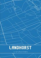 Blaupause der Karte / Karte der niederländischen Stadt Landhorst, gelegen in der Gemeinde Sint Anthonis, Provinz Nordbrabant. Die Karte enthält alle öffentlichen Straßen und die Koordinaten des Zentrums von Landhorst.