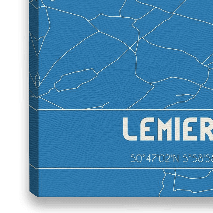 Blaupause der Karte / Karte der niederländischen Stadt Lemiers, in der Gemeinde Vaals, Provinz Limburg. Die Karte enthält alle öffentlichen Straßen und die Koordinaten des Zentrums von Lemiers.