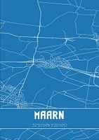 Blaupause der Karte / Karte der niederländischen Stadt Maarn, gelegen in der Gemeinde Utrechtse Heuvelrug, Provinz Utrecht. Die Karte enthält alle öffentlichen Straßen und die Koordinaten des Zentrums von Maarn.