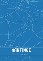 Blaupause der Karte / Karte der niederländischen Stadt Mantinge, gelegen in der Gemeinde Midden-Drenthe, Provinz Drenthe. Die Karte enthält alle öffentlichen Straßen und die Koordinaten des Zentrums von Mantinge.