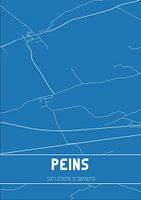 Blaupause der Karte / Karte der niederländischen Stadt Peins, gelegen in der Gemeinde Waadhoeke, Provinz Fryslan. Die Karte enthält alle öffentlichen Straßen und die Koordinaten des Zentrums von Peins.