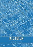Blaupause der Karte / Karte der niederländischen Stadt Rijswijk, gelegen in der Randstad, in der Gemeinde Rijswijk, Provinz Südholland. Die Karte enthält alle öffentlichen Straßen und die Koordinaten des Zentrums von Rijswijk.