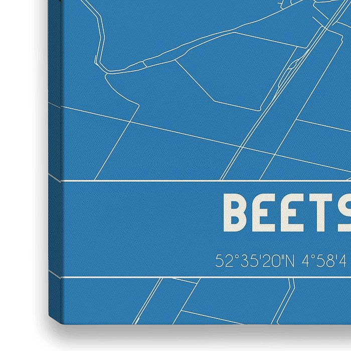 Blaupause der Karte / Karte der niederländischen Stadt Beets, gelegen in der Gemeinde Edam-Volendam, Provinz Nordholland. Die Karte enthält alle öffentlichen Straßen und die Koordinaten des Zentrums von Beets.