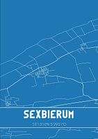 Blaupause der Karte / Karte der niederländischen Stadt Sexbierum, gelegen in der Gemeinde Waadhoeke, Provinz Fryslan. Die Karte enthält alle öffentlichen Straßen und die Koordinaten des Zentrums von Sexbierum.