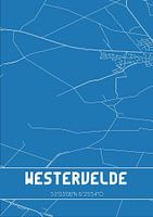 Blaupause der Karte / Karte der niederländischen Stadt Westervelde, gelegen in der Gemeinde Noordenveld, Provinz Drenthe. Die Karte enthält alle öffentlichen Straßen und die Koordinaten des Zentrums von Westervelde.