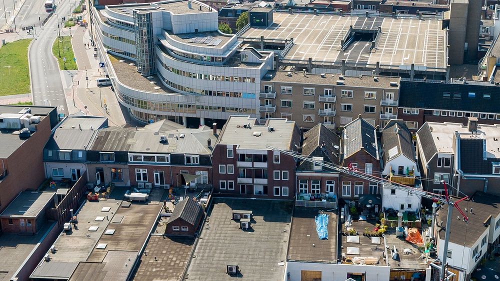 Blick auf Hilversum aus einer Drohne in 100 Metern Höhe.