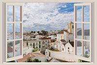 Bestelle das Foto Blick auf Tavira von einem Fenster aus von Fotografie Jeronimo als Kunstdruck auf Leinwand, Alu-Dibond, als Poster, Fototapete oder Acrylglasbild.