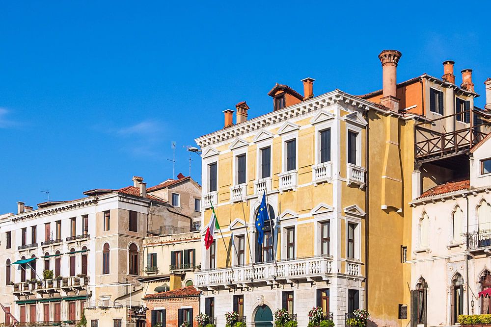 Blick auf den Canal Grande mit Gondel in Venedig, Italien.