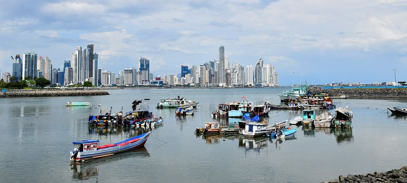 Blick auf den Hafen und die Stadt in der Ferne, Panama-Stadt