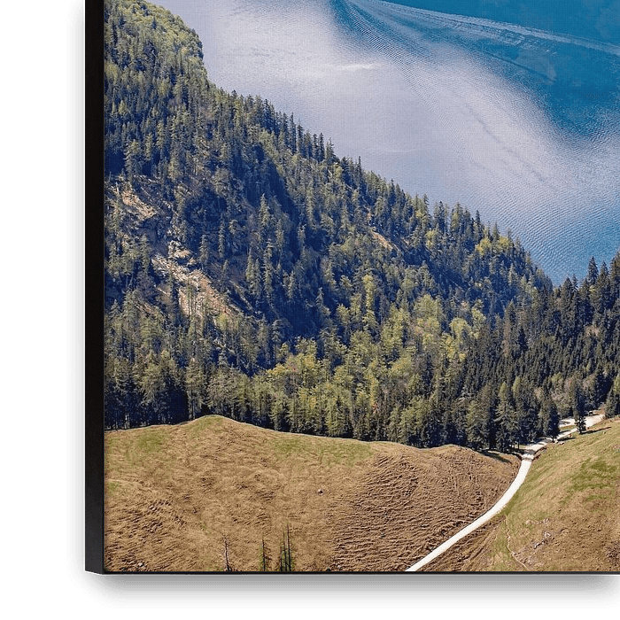 Bestelle dieses Landschafts-Wandbild Blick auf den Königssee mit der Kirche St. Bartholomä von t.ART als Reproduktion auf Leinwand, Alu-Dibond, als Poster, Fototapete oder Acrylglasbild.