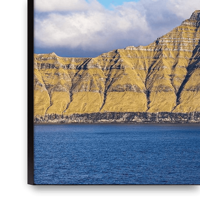 Bestelle dieses Landschafts-Wandbild Blick auf die Felsen der Färöer Inseln mit Wolken von Rico Ködder als Reproduktion auf Leinwand, Alu-Dibond, als Poster, Fototapete oder Acrylglasbild.