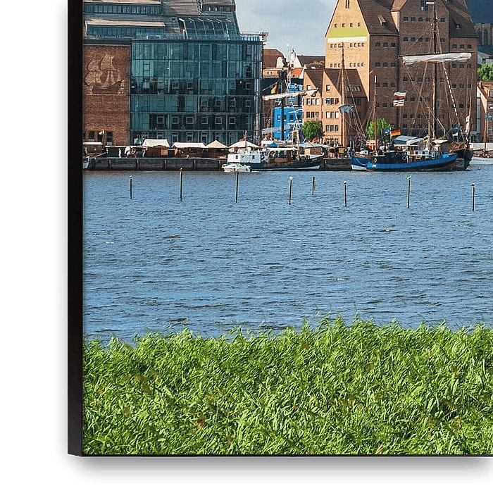 Bestelle das Foto Blick auf die Hansestadt Rostock von Rico Ködder als Reproduktion auf Leinwand, Alu-Dibond, als Poster, Fototapete oder Acrylglasbild.