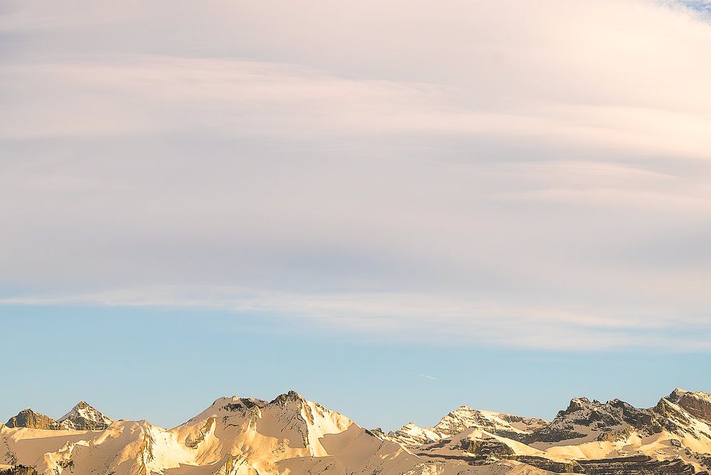 Es gibt Ansichten, die sind so schön anzuschauen. Für mich gehören die Urner Alpen dazu: schneebedeckte Alpengipfel, ein blassgoldener Schimmer der Sonne, ein tiefblauer Himmel und dicke, weiße, schwebende Wolken.