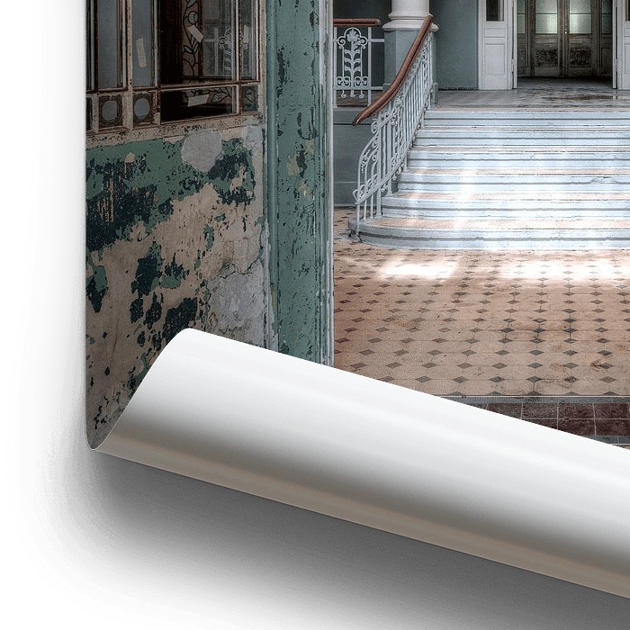 Bestelle das Foto Blick durch Beelitz-Heilstätten von Bjorn Renskers als Reproduktion auf Leinwand, Alu-Dibond, als Poster, Fototapete oder Acrylglasbild.