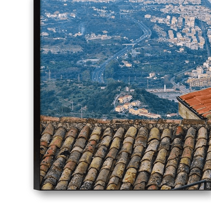 Dieser malerische Ausblick vom kleinen, dennoch berühmten Bergdorf Forza d'Agro bis hin zur Küste von Sant'Alessio Siculo ist am 29. Oktober 2024 in den späten Abendstunden, direkt bei Sonnenuntergang entstanden.
