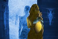 Fotografie, Collage und Grafikbearbeitung in Gelb und Blau.
