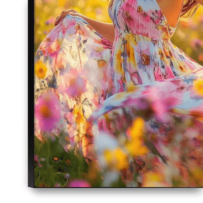 In einem Zauber aus Farben und Licht erblüht eine junge Frau in ihrem blumigen Kleid, während die Sonne sanft über das Feld scheint. Ihre Freude, festgehalten in einem Moment der Unbeschwertheit, strahlt pure Lebensfreude aus. Dieses lebendige Kunstwerk findet seinen idealen Platz im Wohnzimmer, wo es eine warme, einladende Atmosphäre…