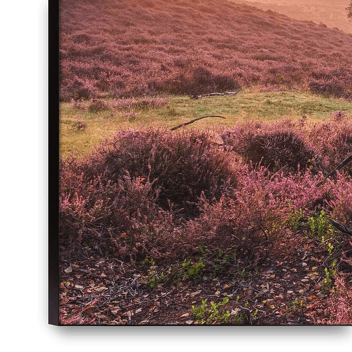 Bestelle das Foto Blühendes Heidekraut auf der Posbank von Michel Knikker als Reproduktion auf Leinwand, Alu-Dibond, als Poster, Fototapete oder Acrylglasbild.