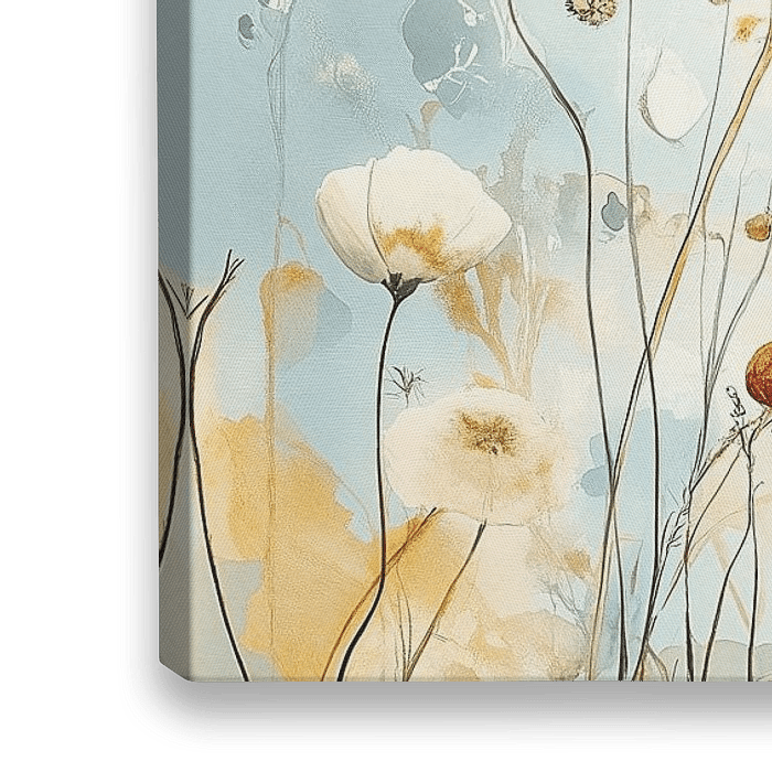 Dieses Gemälde zeigt eine farbenfrohe Sammlung zarter Blumen, darunter auffällige Mohnblüten und zarte, luftige Blumenzwiebeln. Die warmen und kühlen Töne verschmelzen sanft miteinander und schaffen eine verträumte, ruhige Atmosphäre, die die bezaubernde Schönheit der Natur zelebriert. Der lockere, ätherische Stil des Gemäldes…