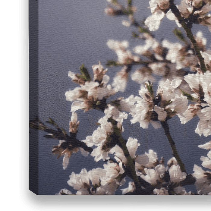 Die Bäume in dem kleinen Dorf Siurana in Spanien stehen in voller Blüte. Die Blüte zeigt, dass der Frühling kommt! Der dunkle Himmel hinter ihnen verrät, dass der Winter noch nicht ganz vorbei ist.