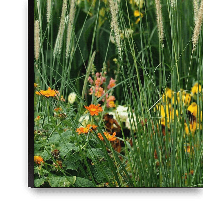 Bestelle dieses Blumen-Wandbild Blütenvielfalt im Garten von Karsten Mücke als Reproduktion auf Leinwand, Alu-Dibond, als Poster, Fototapete oder Acrylglasbild.