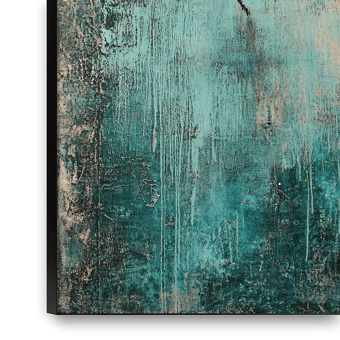 Dieses atemberaubende Design kombiniert die natürliche Schönheit von Blütenzweigen mit einem modernen, abstrakten Ansatz. Die zartrosa Blüten heben sich elegant von einem verwitterten türkisfarbenen Hintergrund ab und schaffen eine ruhige und doch dynamische Atmosphäre. Die strukturierte Oberfläche und die subtilen Farbverläufe schaffen…