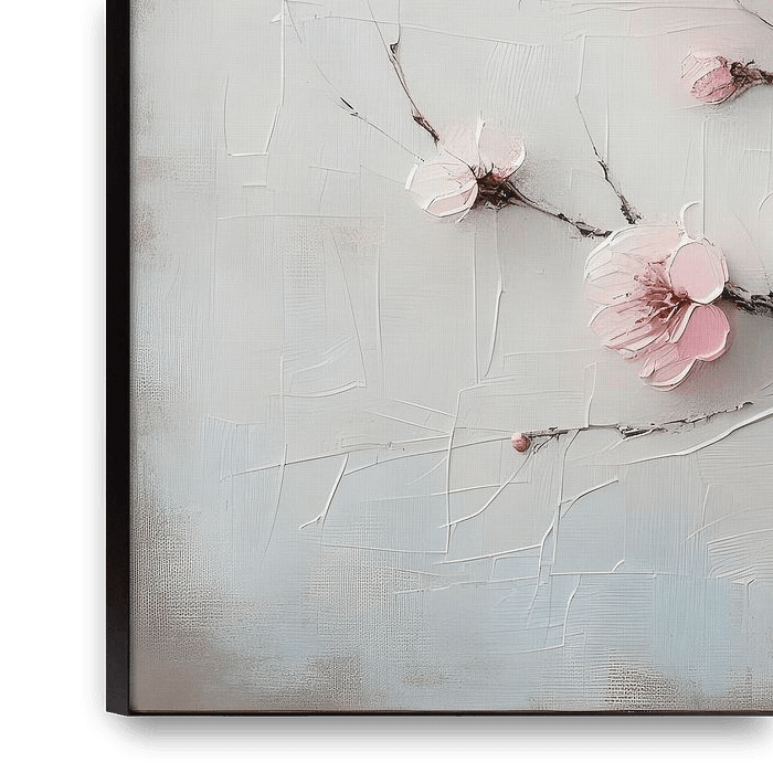 Ein anmutiger Blütenzweig erwacht in diesem raffinierten Werk zum Leben, mit einem Vogel, der sanft zwischen den Zweigen ruht. Die zarten Blüten bringen ein Gefühl von Frühling, Erneuerung und Ruhe in jeden Raum. Dezente Farben und feine Details sorgen für eine elegante und zeitlose Ausstrahlung. Der Vogel verleiht dem Ganzen einen…