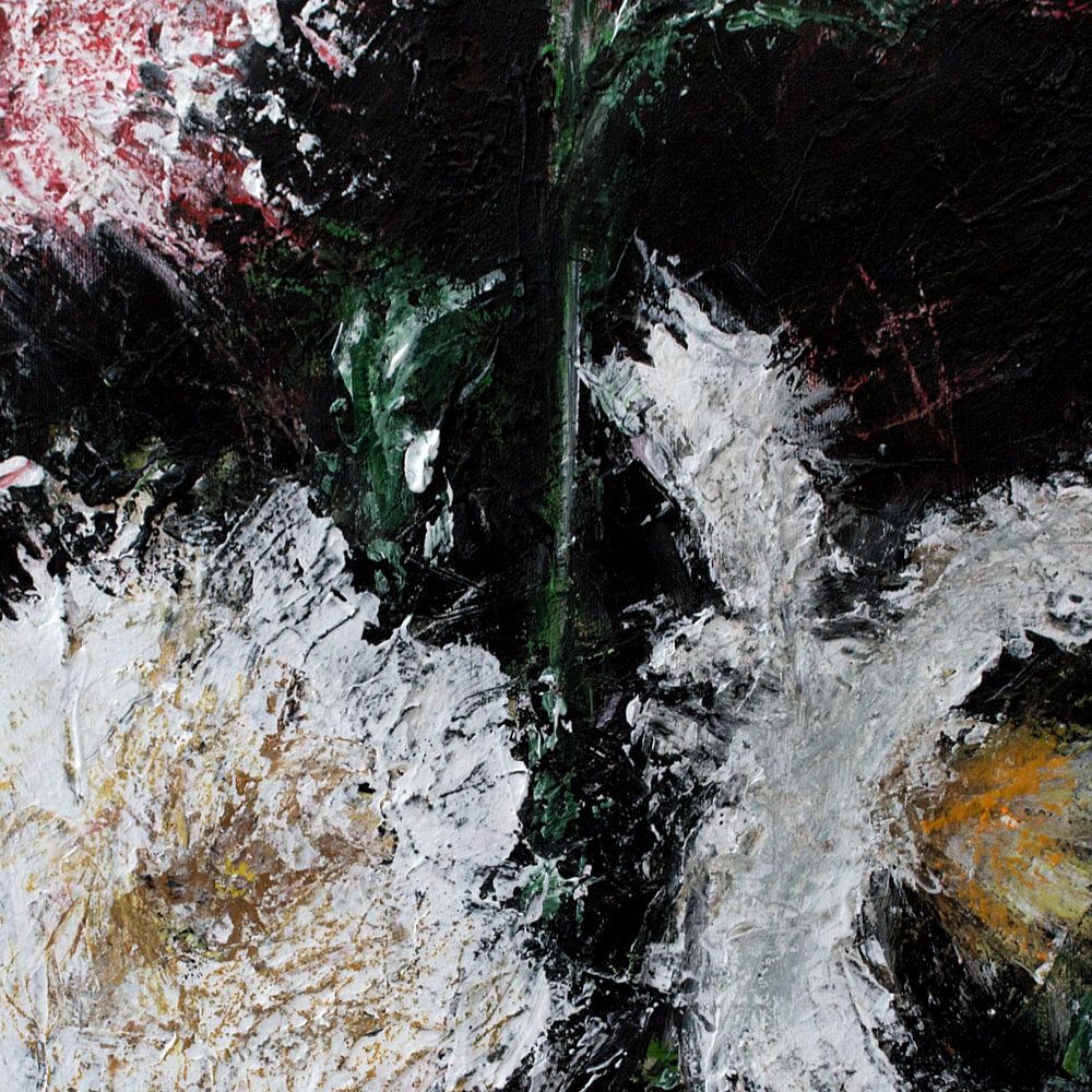 Blumenbild mit schwarzem Hintergrund, Acryl auf Leinwand.