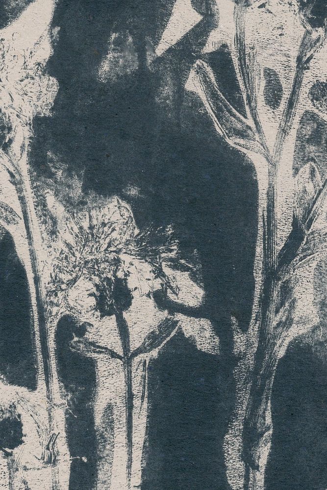 Moderne botanische Illustration im Retro-Stil. Monotypie einer echten Pflanze. Weiche trendige Pastellfarben, zarte Texturen. Wabi-Sabi, Shabby Chic, Romantik, Skandinavisch, Retro, Basic, Minimalistischer Einrichtungsstil.