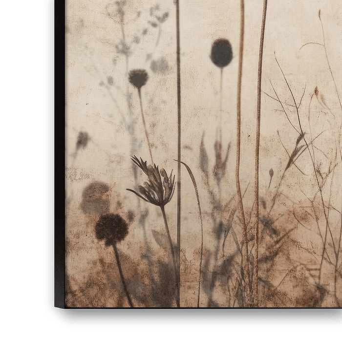 Dieses Werk strahlt eine heitere japanische Atmosphäre aus, in der sich minimalistisches Design und natürliche Formen vereinen. Die zarten Blumen scheinen fast durch die Leinwand zu schweben, wie ein Stillleben in der Balance zwischen östlicher Einfachheit und skandinavischer Ruhe. Perfekt für alle, die Zen ausstrahlen wollen, aber mit einem raffinierten Sinn für Stil.