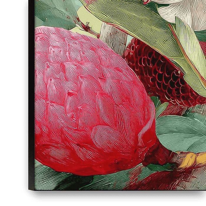 Bestelle dieses Landschafts-Wandbild Blumen und Früchte Tropische Botanik im Detail von Eva Lee als Reproduktion auf Leinwand, Alu-Dibond, als Poster, Fototapete oder Acrylglasbild.