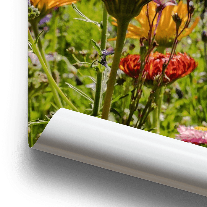 Bestelle dieses Blumen-Wandbild Blumenfeld am Morgen von Kurt Krause als Reproduktion auf Leinwand, Alu-Dibond, als Poster, Fototapete oder Acrylglasbild.